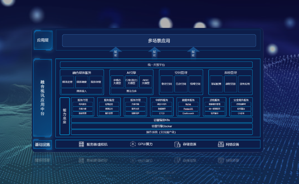 视讯应用管理平台采用B/S模式与微服务架构,专注于教育领域的直点播、课程管理、资源调度及多终端协同。平台深度融合直播、点播、AI分析、权限管理等功能,适配多协议接入与无插件播放,满足高校场景下的高可靠性、高安全性需求,助力构建智能化、可视化的教学管理与资源共享体系。
